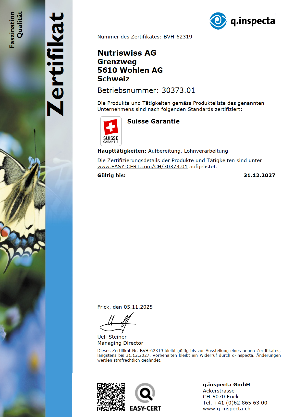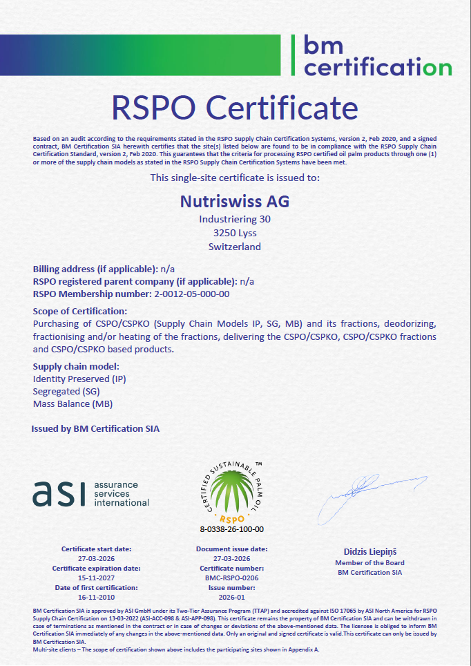 Die Liste der zertifizierten Produkte kann unter qualitaetssicherung[at]nutriswiss[dot]ch angefragt werden.